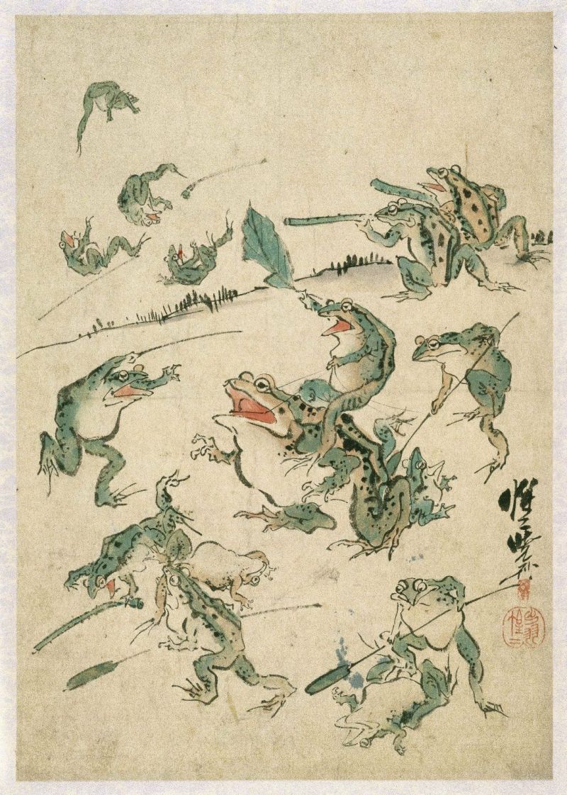 Artwork: Kawanabe Kyosai, Battle of Frogs, N.d.,19th century, public domain.