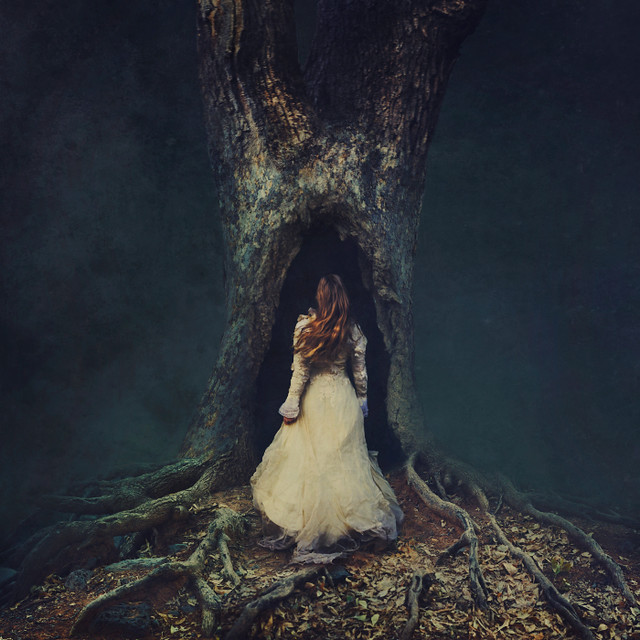 Because they wanted to marry the princess to the prince of a swamp, she first prayed to the gods for a drought to evaporate the swamp, leave it a crater of debris and dried lily pads, but she knew the prayer was a courtesy and meant little before visiting the swamp in secret, trying to catch glimpses of the prince while pretending to be intrigued by the neighboring trees, like anyone cared about trees, but the prince never emerged and as the days grew closer to marriage, the preparations more time consuming, her excursions limited to before the sun climbed the sky, after even the most diligent of servants fell asleep, she began to cut up her old dresses and tied the strips to each other, creating a rope that reached the ground from her window, and slid down, legs burning red from friction, hands growing calluses, before landing on the ground and disappearing into the mountains where it is said tree people take root, coaxing travelers into their great, unwavering forests before absorbing them into their trunks and growing their reach further outward, which was nearly the fate of the princess and the sickly evergreen rooted at the base of mountain, except the tree was too weak to eat her so she ate the tree instead and together they grew large enough to submerge their roots into the walls of the castle and shake it to the ground.