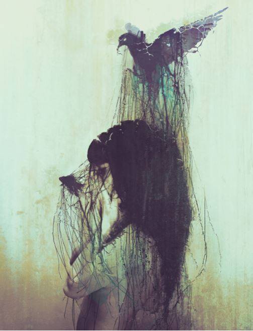 The dew on her face exposes her as a former beauty. Silver curls crawl out of her black hood, through the ivy. You have been lost— wandering through brambles all…